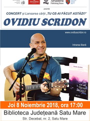 Volumul de poeme „Tu ce-ai făcut astăzi?” a văzut lumina tiparului în noiembrie 2017 și este cea de-a doua carte a lui Ovidiu Scridon, după „Portretul unui gând”, aparut în 2012 la editura Tritonic și reeditat în 2015 la Alexandria Publishing House. Până să ajungă la Satu Mare, autorul a parcurs traseul unui impresionant turneu de promovare în peste 65 de orașe din țară și din Republica Moldova. Fiind și un reputat artist, cantautor și interpret de muzică folk, Ovidiu Scridon le promite sătmărenilor un inedit spectacol de muzică și poezie și un dar de suflet oferit celor care își serbează ziua onomastică, ocrotiți de Sf. Arh. Mihail și Gavril.